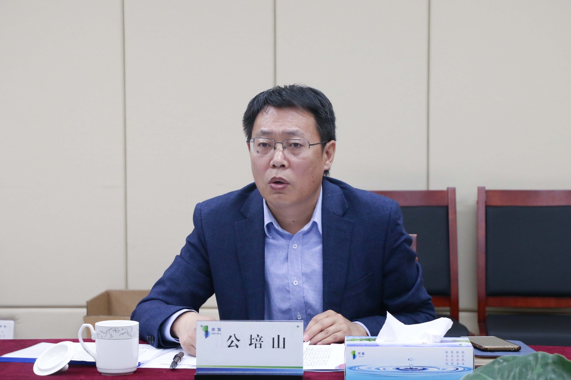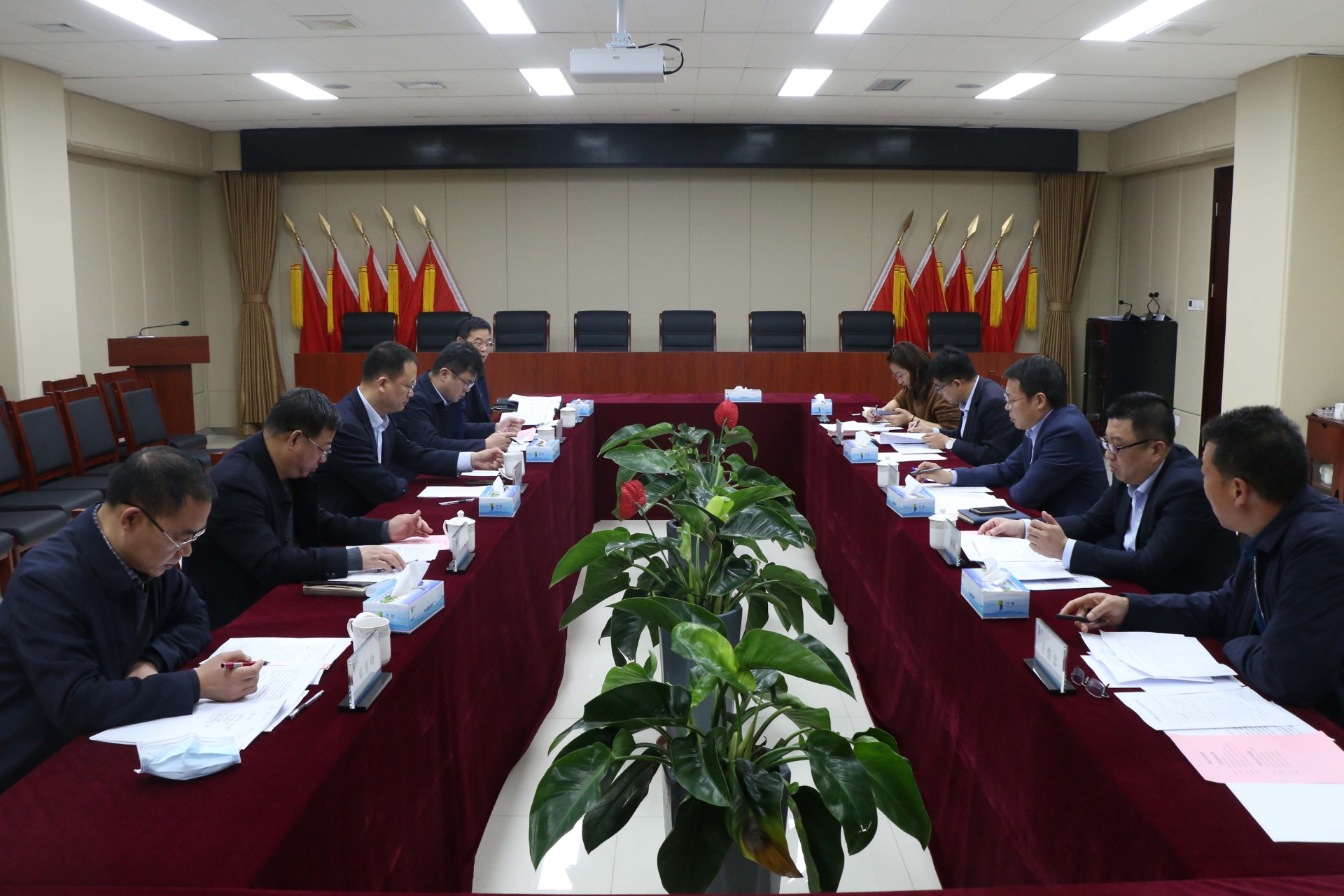 昌乐县财政局党组书记、局长秦维胜,县住房和城乡建设局党组书记、局长李永金,水发生态产业集团常务副总经理王国防,副总经理于明,昌乐蓝宝石水务公司董事长王俊忠参加本次会议(马云飞 供稿)