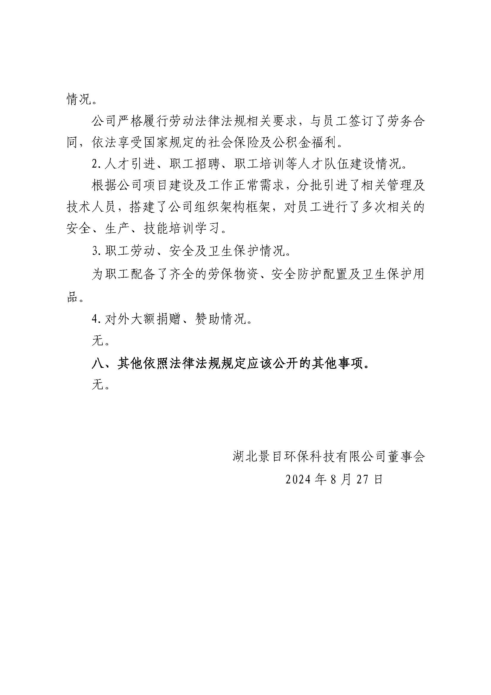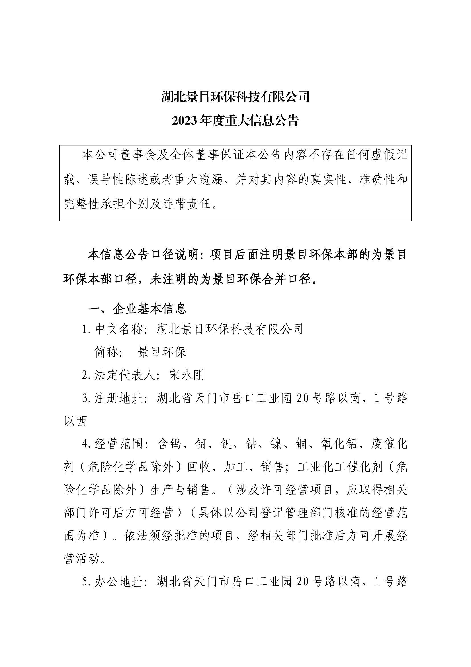 湖北景目环保科技有限公司2023年度重大信息公告