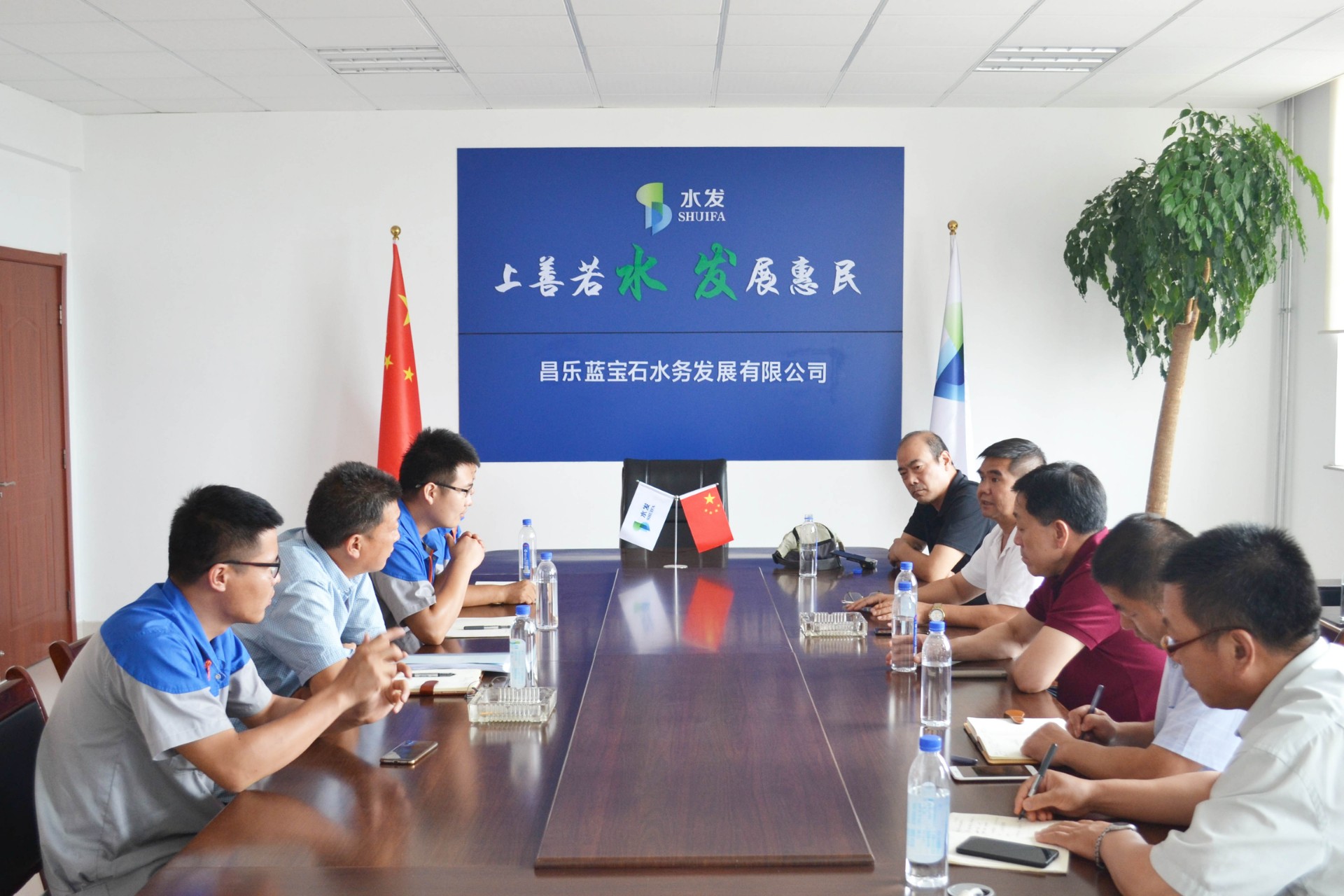 6月27日,山东滨美环境科技有限公司董事长李柏林、技术总工谢兴鹏一行近10人到访昌乐水务公司,昌乐水务公司董事长王俊忠、副总经理冀忠贞及相关生产技术负责人陪同参观了综合池生化系统