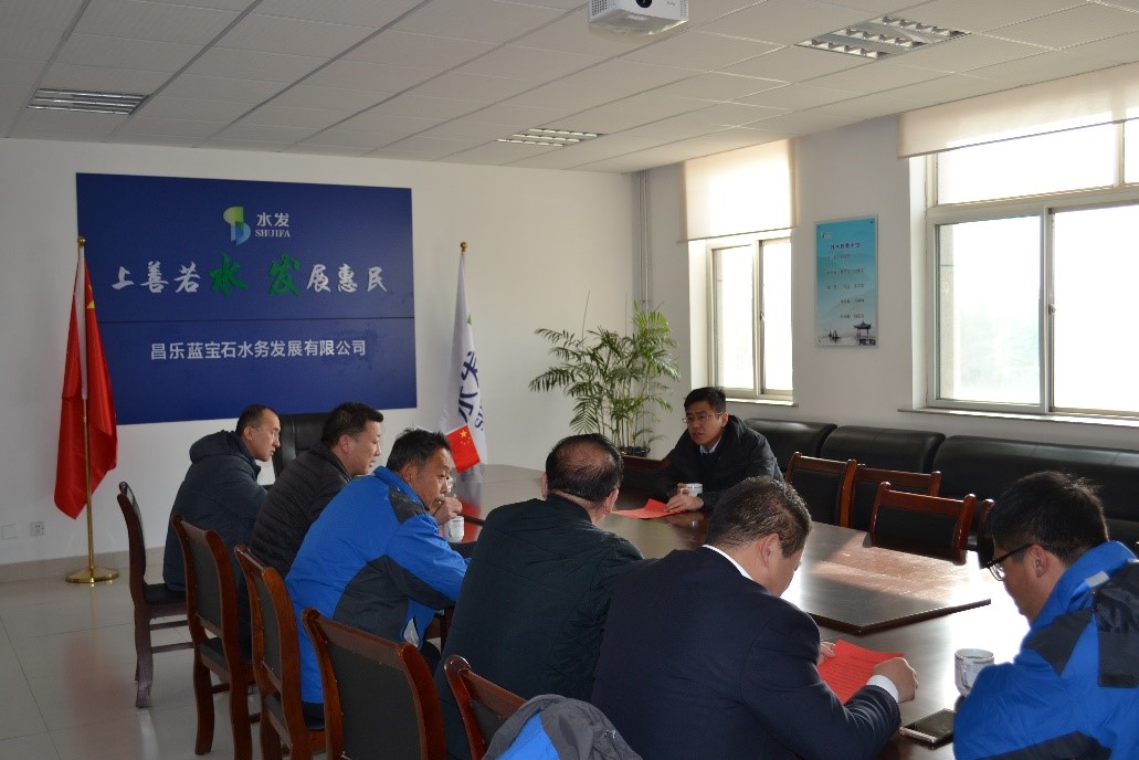1月10日,水发集团综合部副总经理段广彪、山东水投集团有限公司副总经理庞恩启一行到昌乐水务考核规范化建设工作,昌乐蓝宝石水务发展有限公司董事长兼总经理王俊忠陪同。