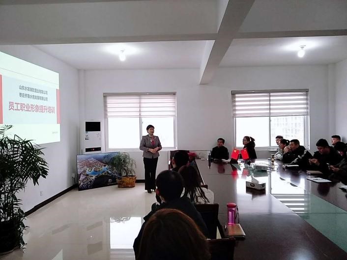 为增强企业员工自身修养,提升企业对外良好形象,1月19日,枣庄水务公司在三楼会议室举办了员工职业形象提升培训会。本次培训邀请了山东省工行内训师、山东省2018年全国推优大赛“优秀培训师”孔令霞老师进行授课,枣庄水务公司、水发瑞乾公司领导班子及全体员工参加了培训会议。