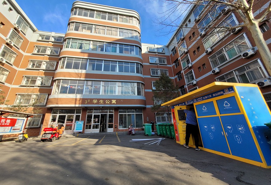 淄博众益共在学校安装了6台智能垃圾分类回收箱,用于促进校园垃圾分类工作,并对废纸、废塑料、废金属和有害垃圾进行回收。回收箱操作简单,全程自动化,师生将可回收物投到箱内后,系统会自动称重并以积分方式结算,结算后的积分可用于积分兑换或提现。