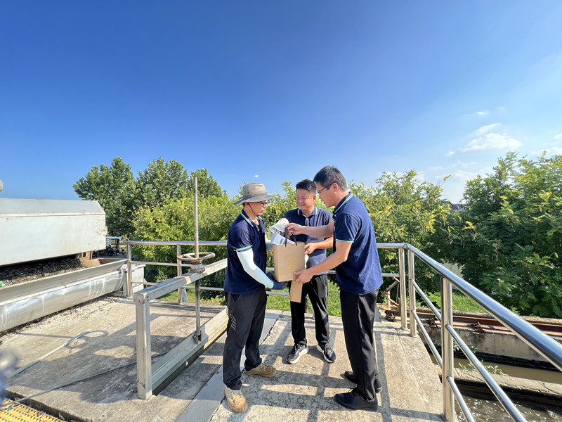 慰问中,工会主席叮嘱大家高温期是安全事故易发、多发的季节,在高温季节工作的同时,要劳逸结合、预防中暑,做好安全工作和自我防护。