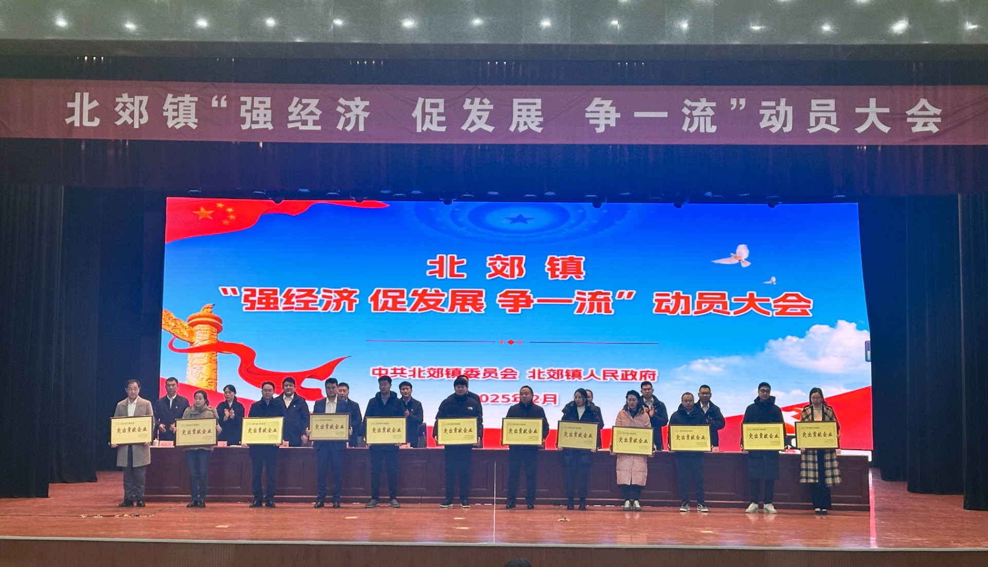 近日,周村区北郊镇政府召开“强经济 促发展 争一流”动员大会,会上对2024年度经济社会发展突出贡献企业和城乡建设突出贡献企业进行表彰,淄博周村淦清污水处理有限公司(以下简称:淦清污水)荣获北郊镇2024年度“升规纳统突出贡献企业奖”。